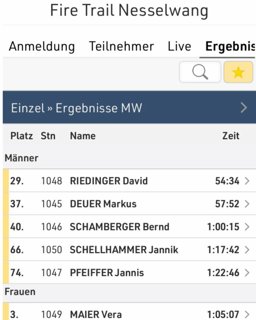 4 Mann vom Löschzug Mühlhausen nahmen am ersten FireTrail Nesselwang teil. Nach dem TowerRun in Rottweil im Juli wurde dieser sehr anstrengende Berglauf erfolgreich in Angriff genommen. Bei über 120 Teilnehmern wurde die 3,7 km und sage und schreibe über 550 Höhenmetern bis auf 1500 Metern Höhe erkämpft. Mit Atemschutzgerät und Einsatzkleidung ist solch ein Lauf sehr anstrengend und fordert einem Feuerwehrmann/Frau alles ab. Die Teilnehmer waren Markus Deuer, Bernd Schamberger, Jannik Schellhammer und Jannis Pfeiffer und David Riedinger( Feuerwehr Anselfingen) Vera Mayer ( Feuerwehr Bittelbrunn) die den 3 Platz der Damen belegte. Mit Zeiten unter einer Stunde für diese Bergstrecke unter Höchstbelastung wurden sehr beachtliche Ergebnisse erzielt. Ohne ein mehrmonatiges hartes Training auf unsere schönen Hegauberge wären diese Zeiten nicht möglich gewesen. Respekt und Anerkennung für diese herausragenden Leistungen.