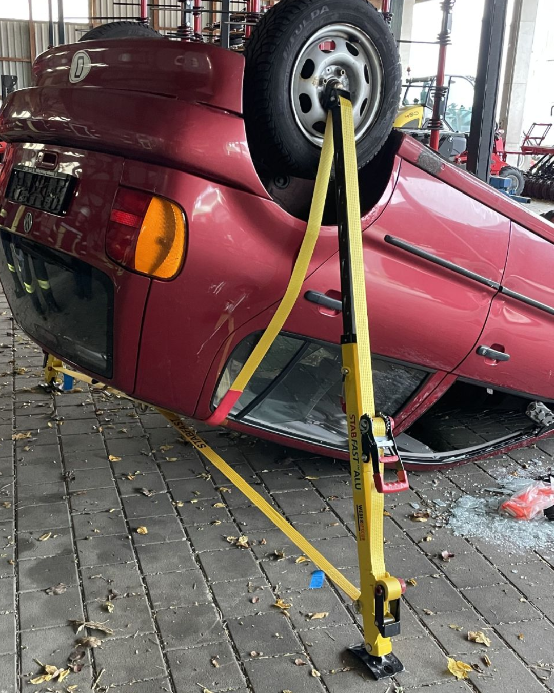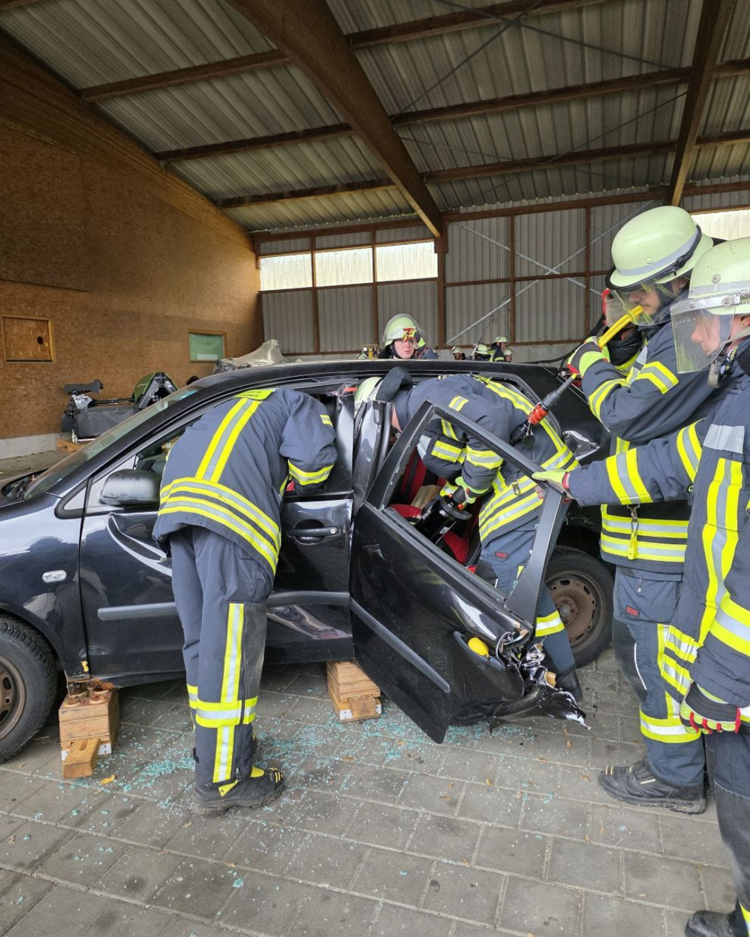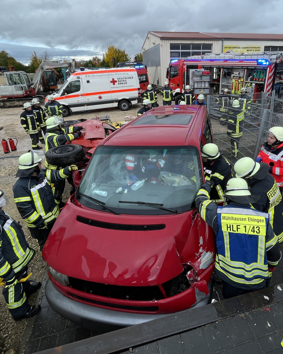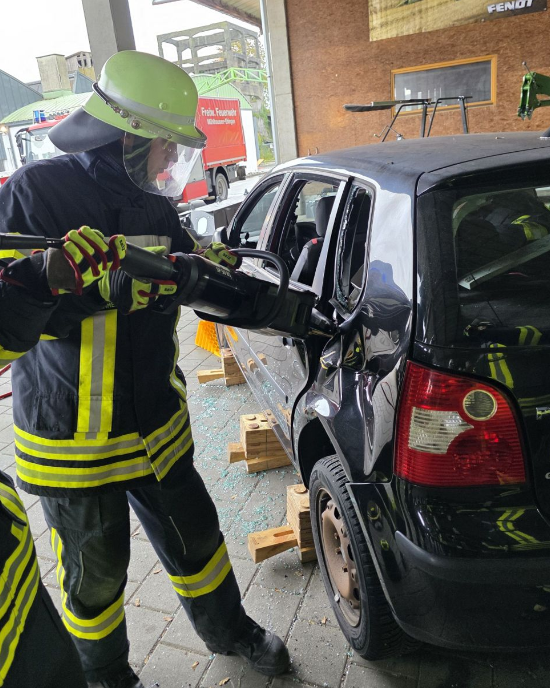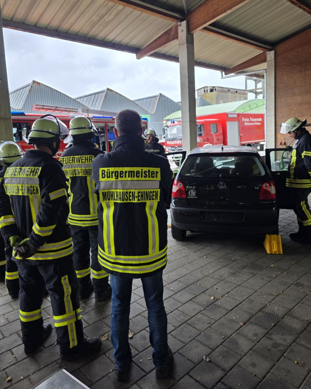 Ein ganzer Tag voller Übungen Am Samstag den, 25 10.25 führte die Feuerwehr Mühlhausen-Ehingen einen Tag der Technischen Hilfeleistung durch. Die Vorbereitungen hierzu liefen schon Monate voraus an. Um 10 Uhr traf man sich, um zusammen zur ZG-Technik zu fahren, welche uns freundlicherweise ihre überdachten Hallen für den Tag ausräumte und zur Verfügung stellte. Dies erwies sich im Laufe des Morgens als absolut hilfreich, denn es fing an in Strömen zu regnen. An 3 Stationen konnte eine einfache Fahrzeugöffnung, eine große Seitenöffnung sowie das Stabilisieren mit dem Stabfast geübt werden.